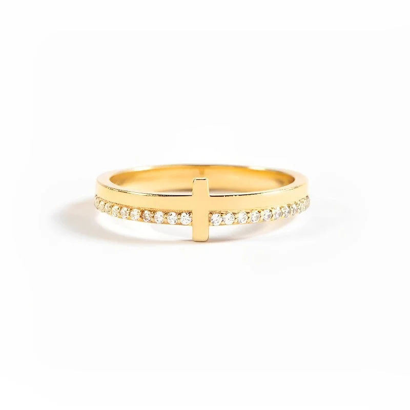 Get empoweredย with our dainty Golden Cross Ring forย women. With faith within us, we shall overcome anything. This sterling silverย cross ringย breaks through the usual paradigm with aย sideways design. When we look down on our finger, we will be reminded of His guidance and power.ย